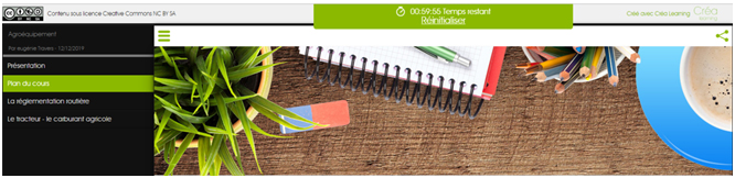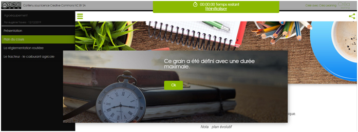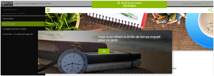 4ème information: certaines sessions d'apprentissage sont à réaliser dans un temps donné. Vous aurez, en haut de votre écran, en vert, un indice temps qui vous l'indiquera.