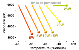 - « 10W » : indice de viscosité à froid suivi de la lettre W signifiant winter (hiver en anglais). une faible valeur indique une bonne fluidité, facilitant les démarrages.