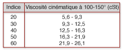 - « 40 » : indice de viscosité à chaud (100°C) ; plus la valeur estélevée, meilleure est la lubrification