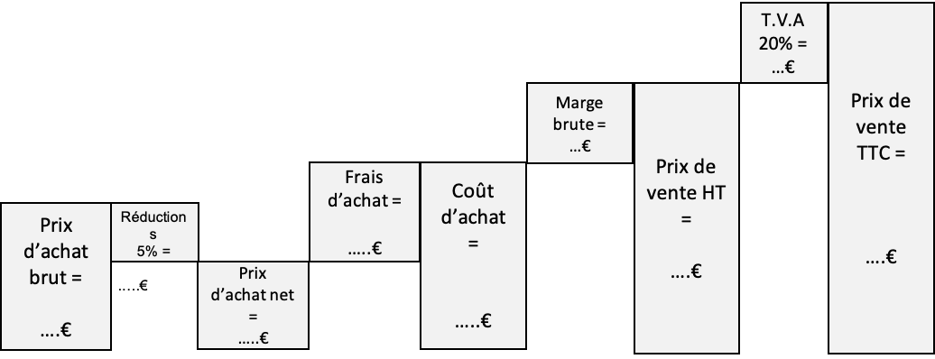 Les frais d’achat s’élèvent à 50€ et la marge brute est de 120€.