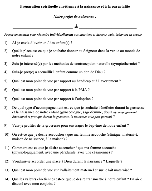 Prenez un moment pour répondre individuellement aux 10 questions ci-dessous, puis, échangez en couple.